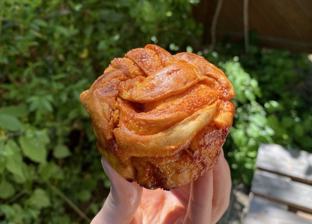 - Den Hefeteig 5 mm dick ausrollen und mit 85 g Gochujang-Creme glatt bestreichen. Ein Drittel des ausgerollten Teiges zur Mitte hin eingeschlagen und das verbleibende Drittel darüber falten. Ca. 20 Min. im Froster kühlen. Anschließend den gefalteten Teig in 8 Streifen schneiden, jeden Streifen längs 2-mal bis 1 cm vor dem Rand einschneiden, die 3 Stränge flechten, aufrollen und in Muffin-Formen setzen. Bei 3/4 Gare mit 4%iger Natronlauge besprühen (Schutzkleidung tragen!).
